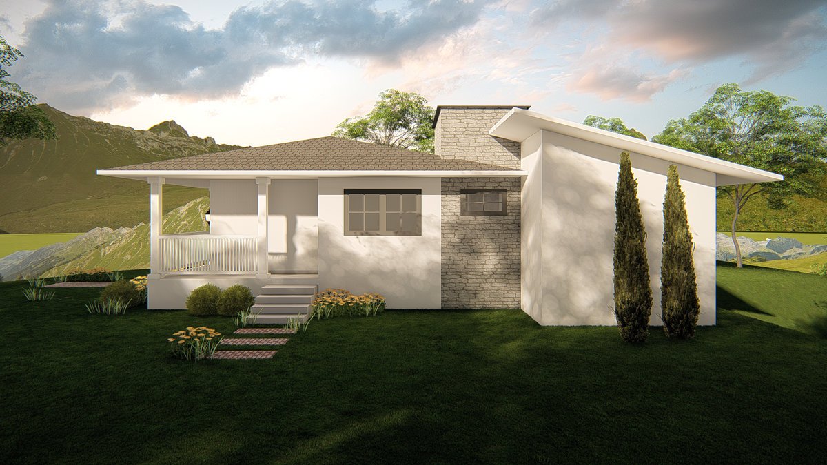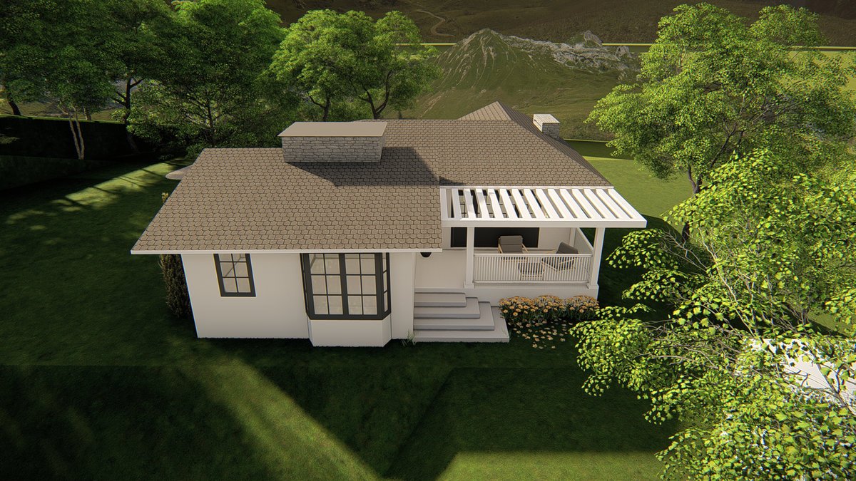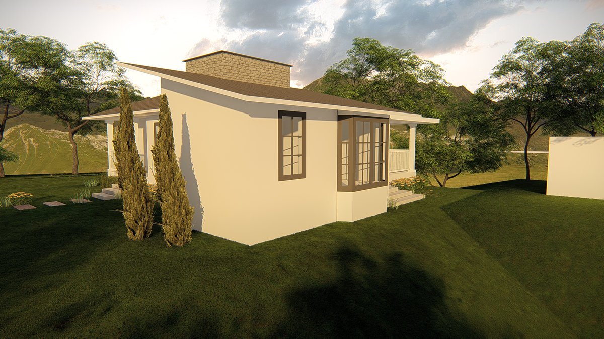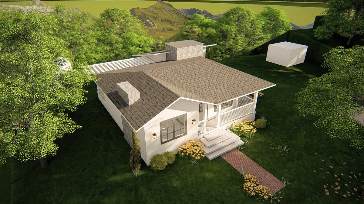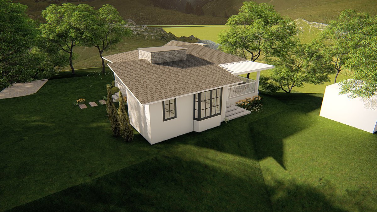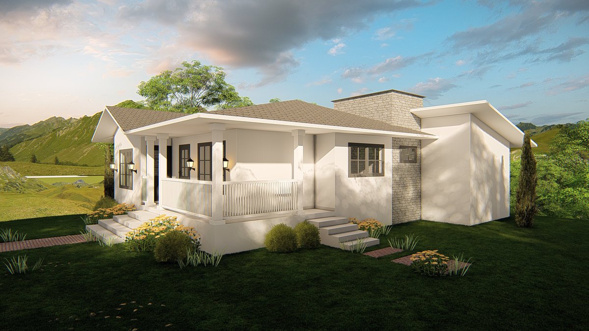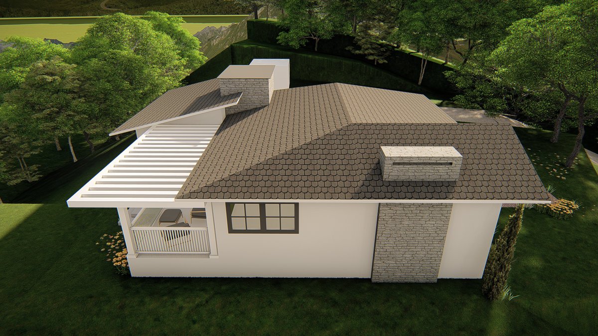 Inspirada no estilo americano, ela combina o charme das varandas frontais com colunas elegantes, janelas com caixilhos escuros e um telhado de duas águas que reforça sua estética acolhedora e atemporal.