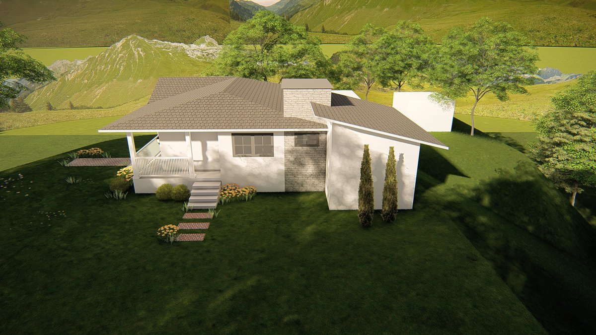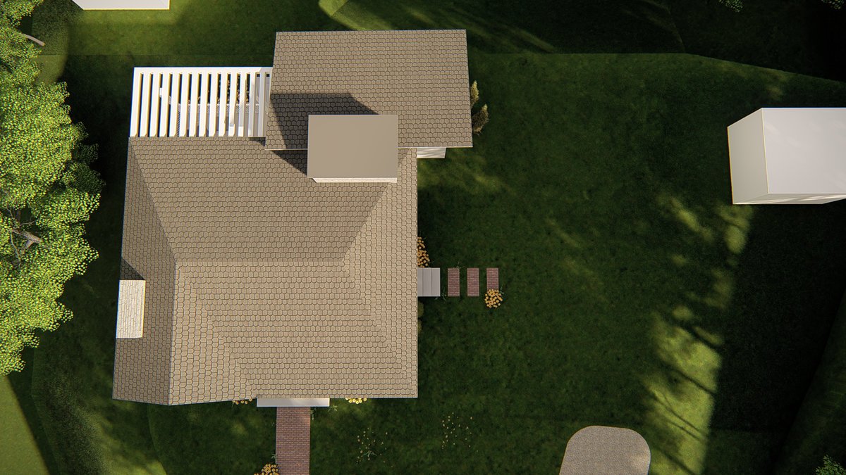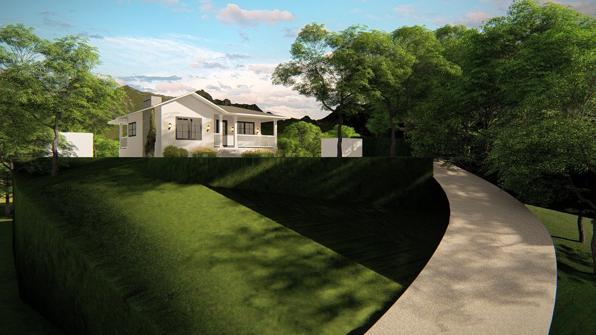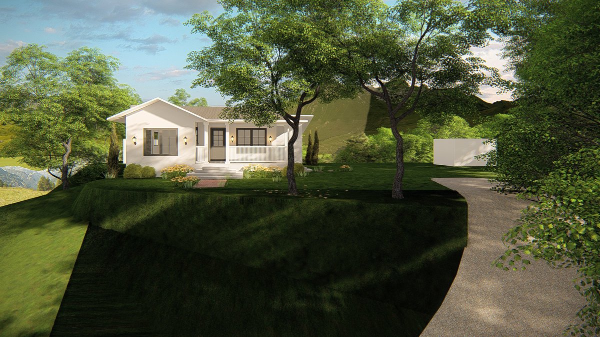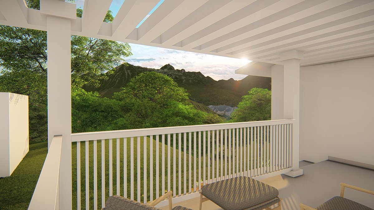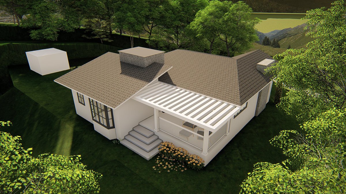 Inspirada no estilo americano, ela combina o charme das varandas frontais com colunas elegantes, janelas com caixilhos escuros e um telhado de duas águas que reforça sua estética acolhedora e atemporal.